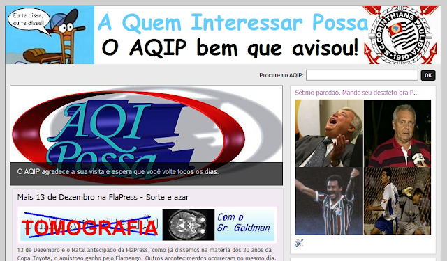 O assarapantado amigo, já começa equivocado. Não há nenhuma menção ao Corínthians em toda a matéria dos 30 anos de ilusão. O que nosso enganado visitante de terras do faz de conta deve ter pensado, é que o AQIP é corintiano por causa da header usada no momento. (ela muda de tempos em tempos) Se ao menos tivesse vindo com mais frequencia, teria percebido se tratar de sarcasmo com o Corínthians, pois desde o início do ano que o AQIP vinha falando das maracutaias e que já estava decidido que o Timão seria campeão brasileiro de 2011. Veja qual é o header do momento: