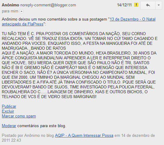 Este é o maior dos idiotas flamenguistas que já lí. Vou reproduzir uma parte da escrita dele e depois vou fazer alguns comentários. Ele diz:
