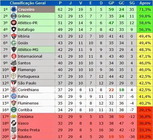 O Coritiba parece não conseguir melhorar mais sua situação. E ela pode ainda piorar, já que o Z4 está logo abaixo e ele se encontra no G16, embora a Globo só vá falar nissi no dia que o Flamengo estiver em 16º. A Ponte Preta, que está no Z4, venceu por 1x0 e ainda mantém viva as esperanças de não ser rebaixada. A Portuguesa também venceu. A vitória de 3x1 sobre o Criciúma, deixou a Lusa no G11, atrás do esgoto da Gávea e o Criciúma não saiu do Z4.