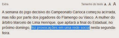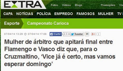 Matéria do Globo: http://globoesporte.globo.com/rj/futebol/campeonato-carioca/noticia/2014/04/vascaina-esposa-de-arbitro-da-final-critica-torcida-e-diz-que-vice-ja-e-certo.html
