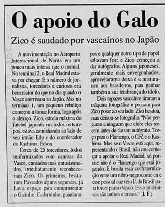 2. A atitude de ZICO. O Deus da mulambada, símbolo de profissionalismo, humildade e tudo mais. E recebido respeitosamente pelos torcedores do VASCO no Japão. Ele mesmo admite que essas polêmicas, de torcer contra, são inúteis e irreais.